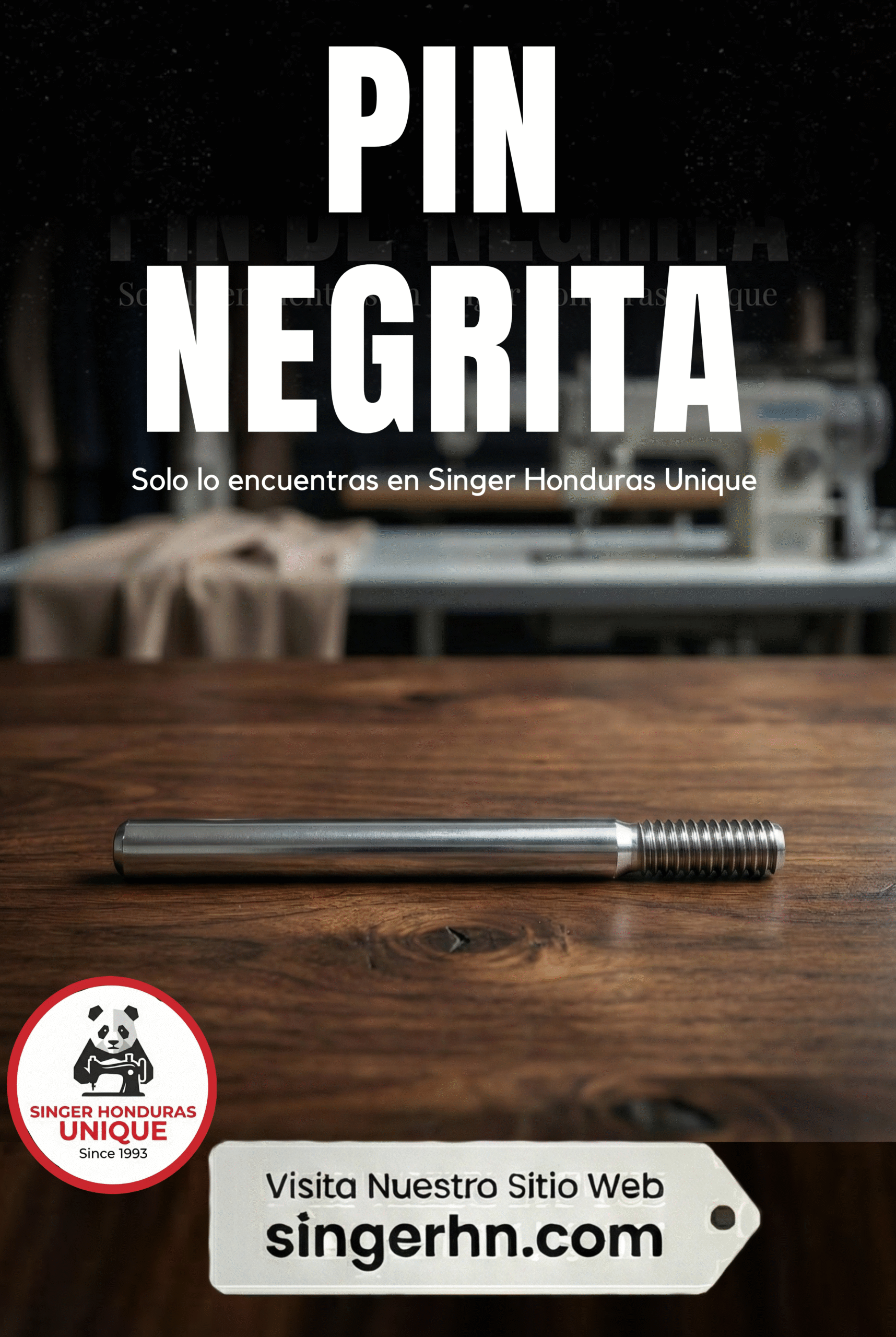 El pin de hilo Negrita (porta carrete) es la pieza donde se coloca el carrete de hilo superior en las máquinas de coser domésticas Singer Negrita (clásicas). Su función es sostener el carrete de forma firme y alineada, permitiendo que el hilo se desenrolle de manera suave y constante hacia el sistema de tensión y la aguja.
