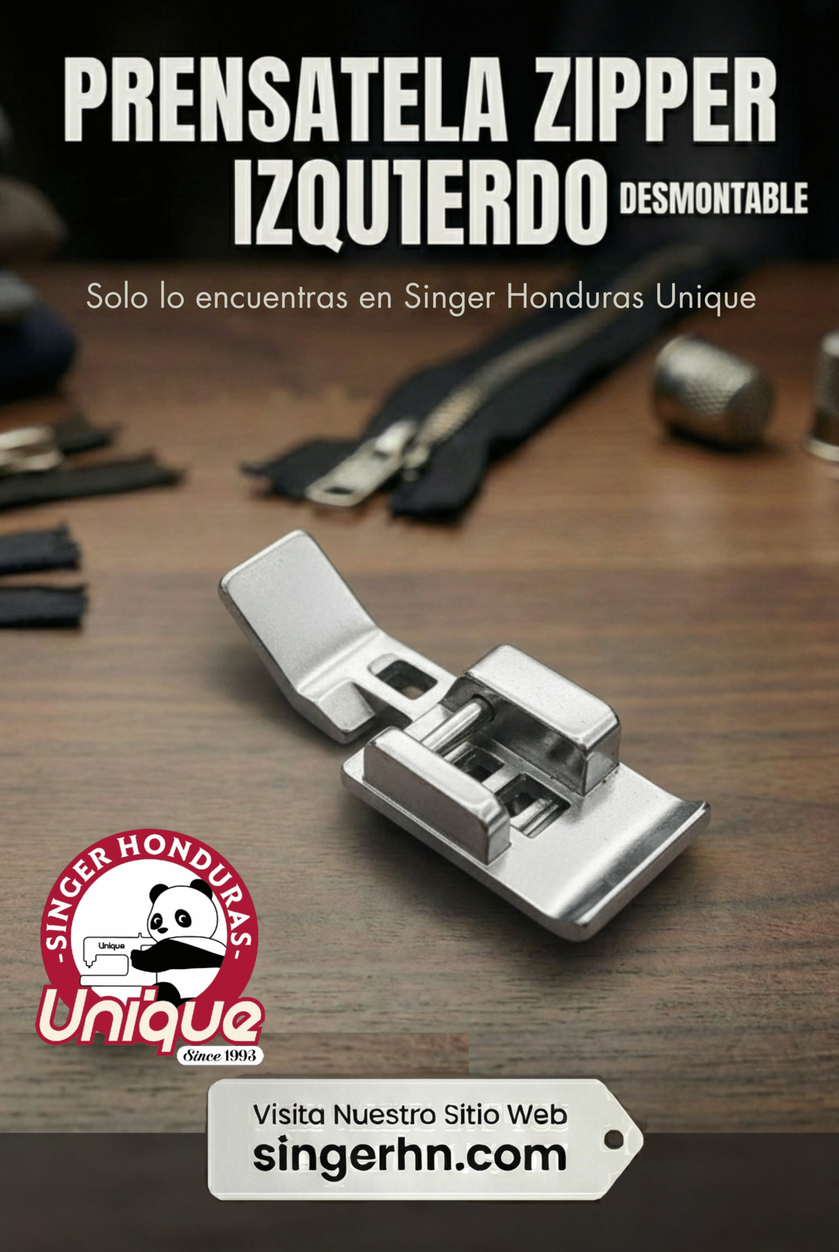 El prensatela zipper desmontable izquierdo doméstico está diseñado para coser cierres (zippers) por el lado izquierdo con máxima precisión. Permite acercarse al borde del cierre sin tocar los dientes, logrando un acabado limpio y profesional en prendas y accesorios. Su sistema Snap-On (desmontable) facilita la instalación y el cambio rápido durante la costura.